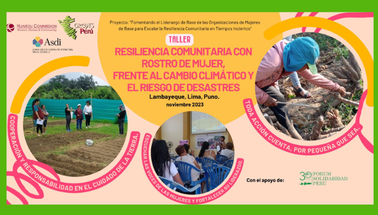 Ante la incapacidad del Estado para tomar medidas de prevención frente a las múltiples crisis que atraviesa el país, (la llegada del Fenómeno El Niño, el incremento de los precios de los comestibles, las dificultades de los campesinos para la producción de alimentos y el incremento de los riesgos de desastres), es que la Red de mujeres GROOTS PERU, está iniciando un ciclo de talleres para ampliar su información, investigar y proponer en sus comunidades medidas que las protejan de la escases de alimentos y de los riesgos frente a desastres naturales y el cambio climático, como una manera de cuidar la vida.