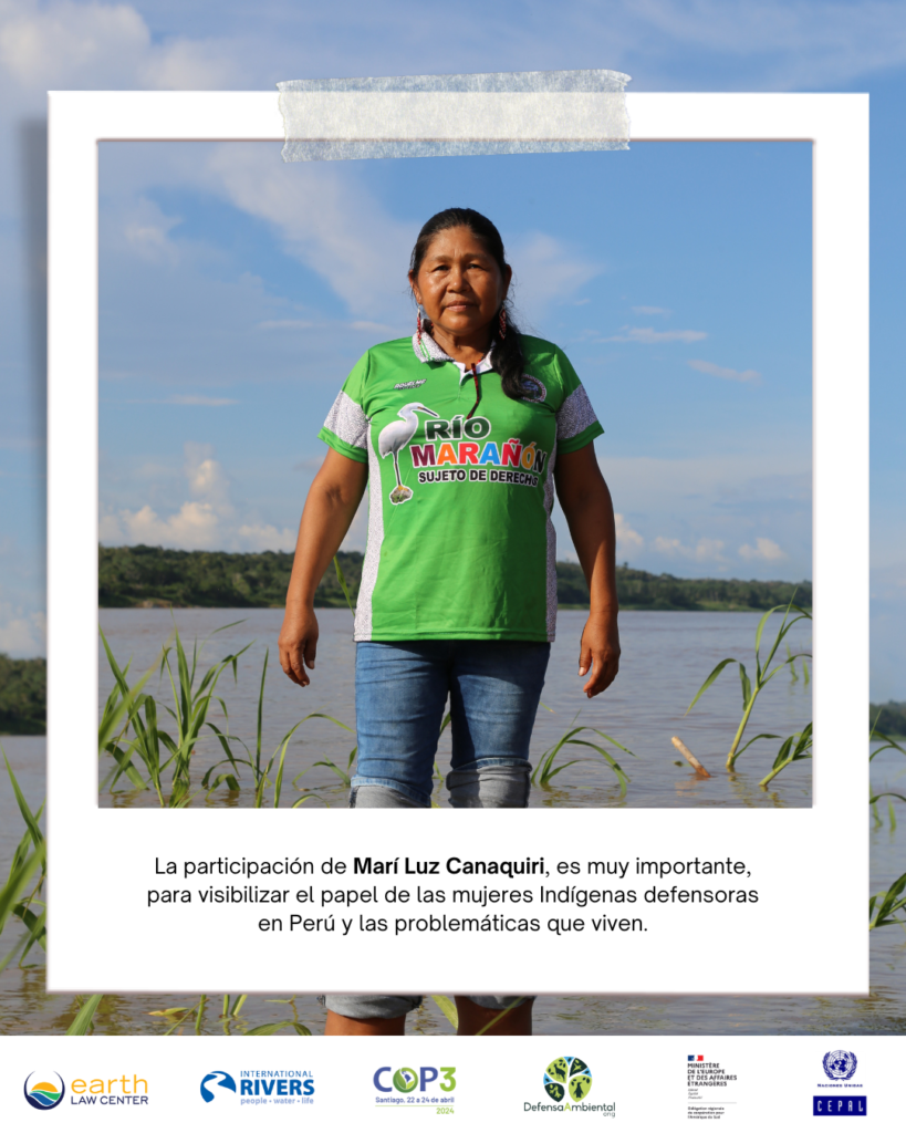 Su presencia y activismo como mujer Indígena defensora, han resonado en los debates sobre la protección de los ríos, medio ambiente y los derechos de los pueblos amazónicos. Para Mariluz Canaquiri, es importante asistir a la COP3 del Acuerdo de Escazú para visibilizar el rol de mujeres defensoras del río Marañón que las Kukamas han ejercido por décadas y exponer ante instancias internacionales que, a pesar de haber conseguido un logro judicial que reivindica de los derechos de pueblos indígenas y el reconoce los derechos del río Marañón, siguen existiendo asimetrías y barreras que impiden a las mujeres indígenas ejercer sus derechos de forma plena.